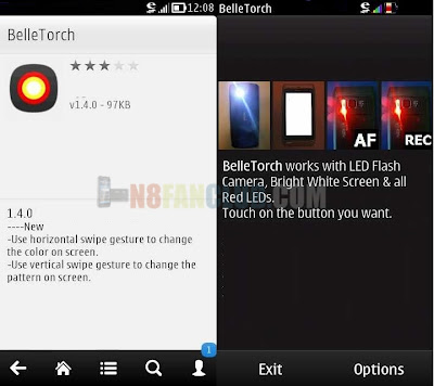 BelleTorch turns your Nokia phone into a extremely bright flashlight. Compatible with S^3 / Anna / Belle Smart Phones. Super easy to use!
